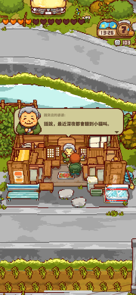 和雜貨店奶奶對話完後去幫他擦車